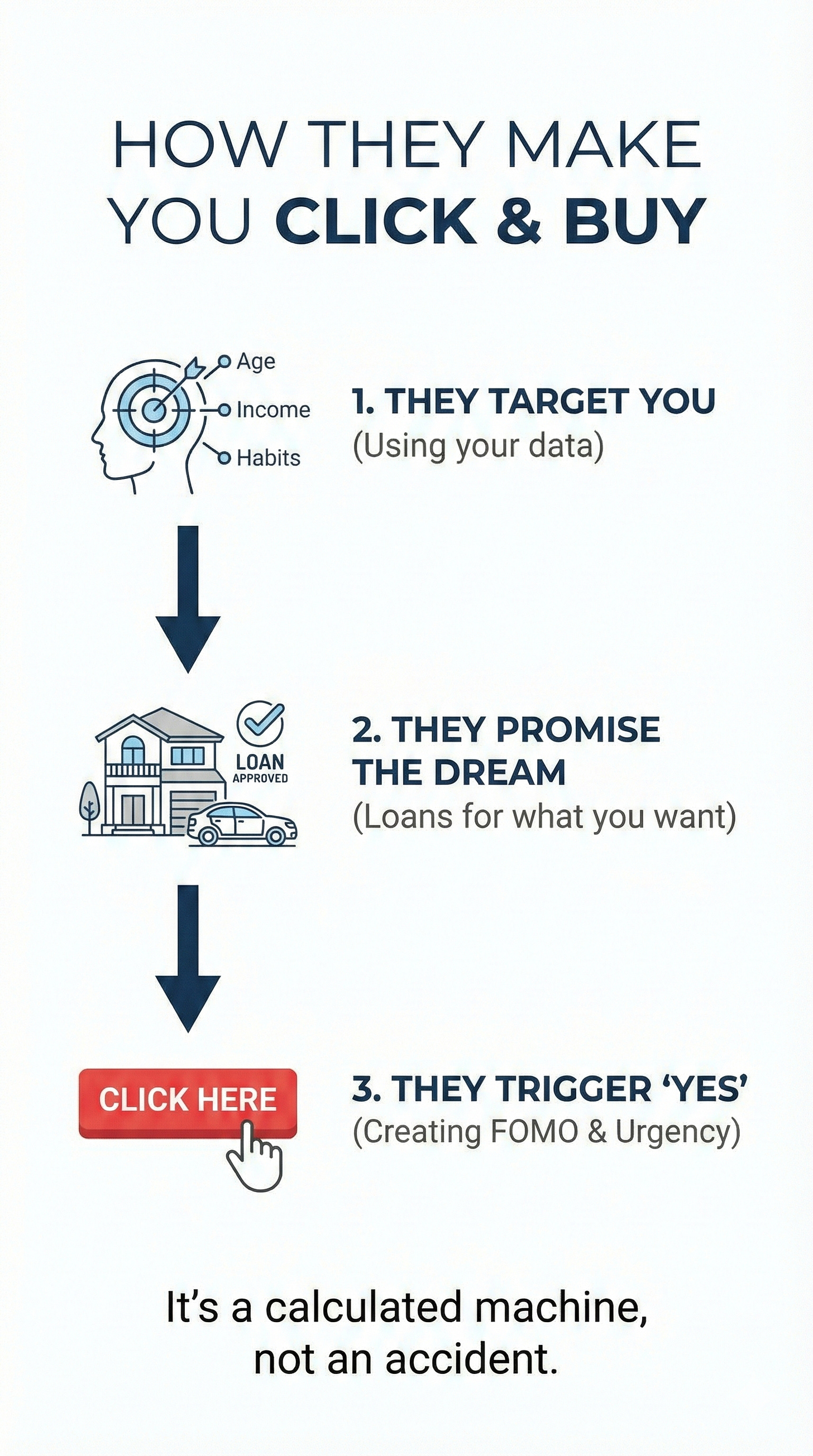 An entire industry exists whose only job is to sell you a life, make you fall in love with that life, and then give you loans to fund that love.